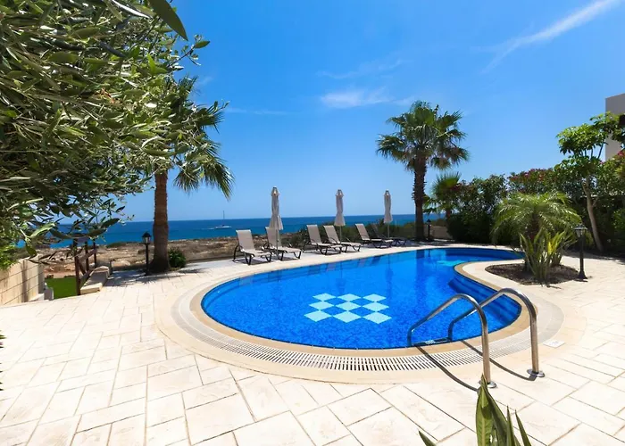 Villa Sea Holly Front Line med 2 sovrum, som ligger ungefär 11 minuter till fots från Glifades, välkomnar gästerna med en utomhuspool. Villan med 2 badrum har en parkering och en terrass med utsikt över poolen.